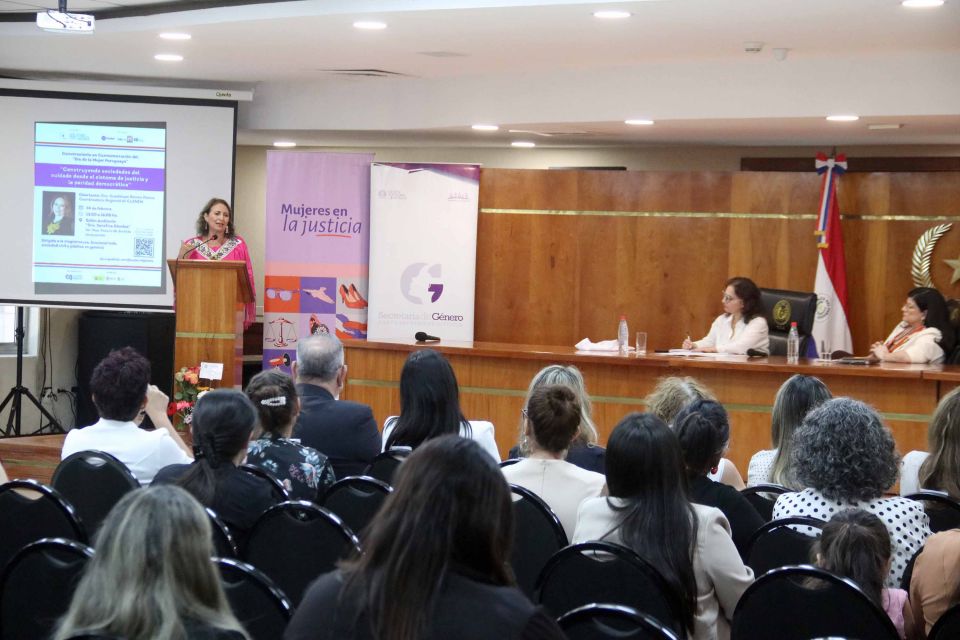 Con presencia de la ministra de la Corte Suprema de Justicia, doctora María Carolina Llanes Ocampos, se realizó este martes 24 de febrero el conversatorio denominado “Construyendo sociedades del cuidado desde el sistema de justicia y la paridad democrática”, en conmemoración del “Día de la Mujer Paraguaya”.