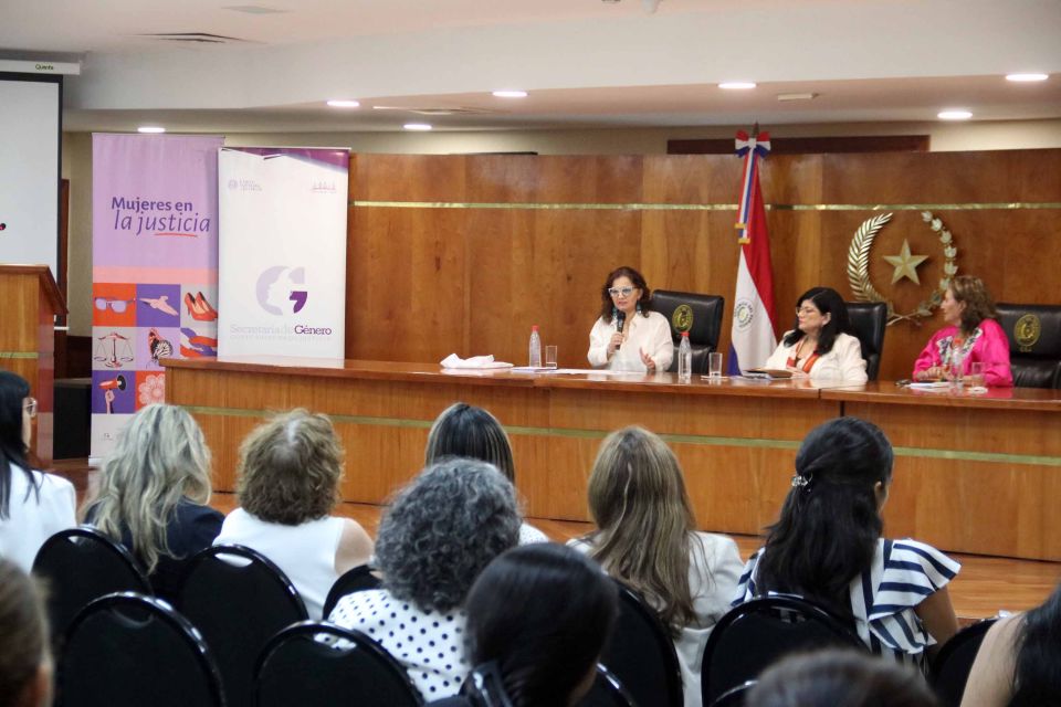 También informó sobre el desarrollo del proyecto “Promoción de la Igualdad de Género en el Poder Judicial de la República del Paraguay – Mujeres en la Justicia”, impulsado por la Secretaría de Género de la Corte Suprema de Justicia, con apoyo de la cooperación internacional y el acompañamiento de instituciones especializadas.