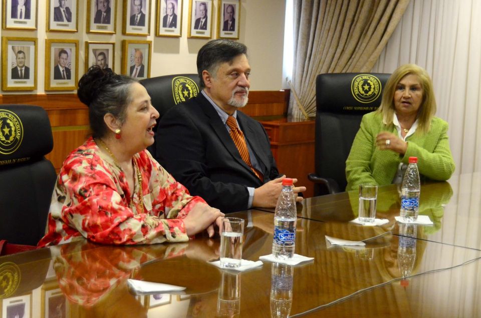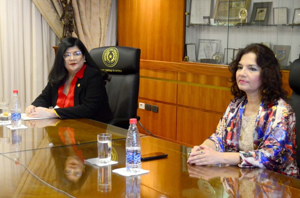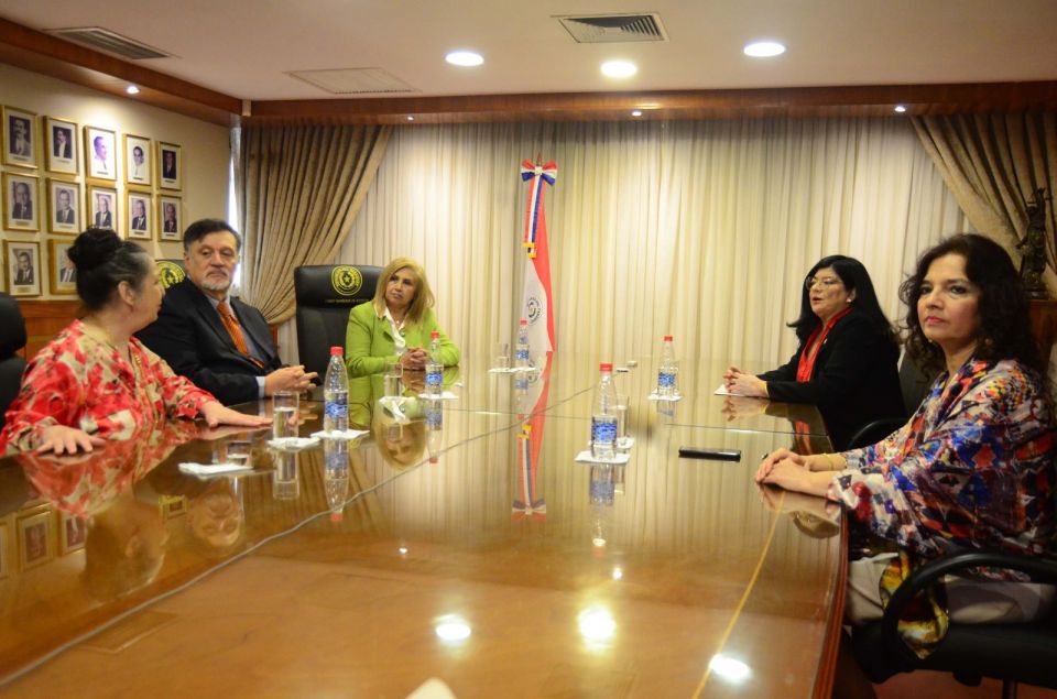 En el marco del Proyecto “Promoción de la Igualdad de Género en el Poder Judicial de la República del Paraguay – AECID/PJ/CEJ”, este lunes 26 de mayo, en la Sala del Pleno de la Corte Suprema de Justicia, el presidente de la máxima instancia judicial, doctor César Diesel, y la vicepresidenta primera, doctora Carolina Llanes, mantuvieron una reunión con la doctora Silvia López Safi, directora de la Secretaría de Género; la doctora María Victoria Rivas, directora ejecutiva del Centro de Estudios Judiciales (CEJ); el doctor Rodrigo Jiménez Sandoval y la doctora María Mercedes Buongermini, con el objetivo de presentar formalmente los productos técnicos elaborados en el marco del acuerdo suscripto entre la Corte Suprema de Justicia, la Agencia Española de Cooperación Internacional para el Desarrollo (AECID) y el CEJ.