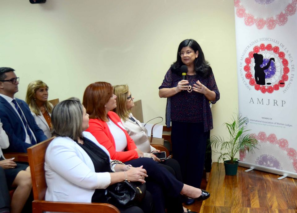 En su intervención, Celeste Jara, presidenta de la Asociación de Magistradas Judiciales de la República del Paraguay (AMJRP), señaló que aún persisten desafíos relevantes en el camino hacia la igualdad y la legitimidad.