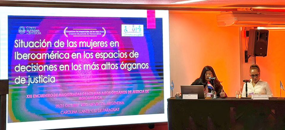Al referirse al contexto nacional, mencionó que en Paraguay han integrado la Corte Suprema de Justicia cuatro mujeres: Alicia Pucheta de Correa, primera ministra mujer; Gladys Bareiro de Módica; Miryam Peña; y la propia Carolina Llanes, quien actualmente integra la máxima instancia judicial. Agregó que, desde su incorporación en 2019, ha impulsado activamente la participación femenina en el máximo tribunal.